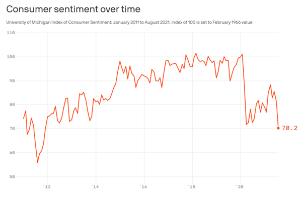 We did have some negative economic news coming out in the past week with US consumer sentiment plunging to the lowest level since 2011, which helped push gold higher on a weaker USD. The delta variant is still creating problems for the US economy and we can only guess when and what the next variant will be.