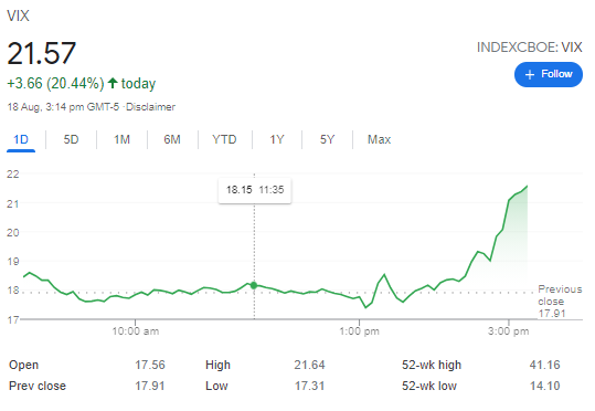 With consumer sentiment plunging in the US this can have knock on effects to both consumer spending and potentially stock market performance as individuals move towards hanging onto their cash, rather than splurging on things they don’t need, or throwing money at an excessively bubbly stock market. The survey’s chief economist Richard Curtin says, “The extraordinary surge in negative economic assessments also reflects an emotional response, mainly from dashed hopes that the pandemic would soon end.” It is true that the emotional drain of the covid pandemic must certainly be taking its toll on the US now, and the enthusiasm in the stock market is getting a bit long in the tooth. One sign that we could be in for some equity market volatility very soon would be the price action in the VIX volatility index, which spiked 20% overnight. The US stock market is well overdue for a wakeup call and correction so we still wait for this to play out. Perhaps stock market volatility will be the next driver of precious metals prices in the short-term, as a fear trade/flight to safety trade kicks in.