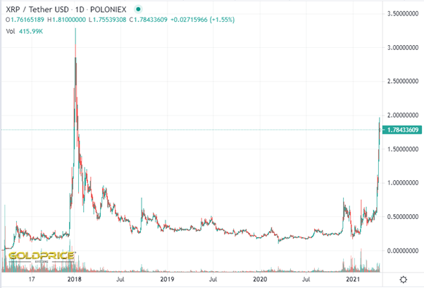 Even ripple which had the most absurd bubble in 2018 looks to be repeating itself. No doubt the market is taking some of the shine away from precious metals, as the gains in some of the alt coins have been incredible in the past 12 months. One lesson from the market is never underestimate the stupidity of the masses. Ripple for example is doing a mirror image of the 2018 spike and it will eventually end the same way.