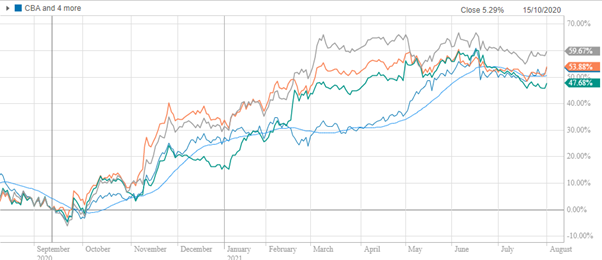 Even for the month of July, Sydney property prices were reportedly 2% higher, with the median house value hitting an eye watering $1.26 million, and apartments hitting $810,000. It makes you wonder who all these millionaires are when you consider the sheer numbers of Sydney siders who are struggling to get by. If a decent percentage of the buyers are financing a significant portion, it also makes you wonder how poor the risk assessment must be for lenders. It is hard to imagine bank shares and property prices continuing along at the current clip if lockdowns continue; but I guess under 0% interest rates at the central bank level, you tend to see some crazy things across financial markets.