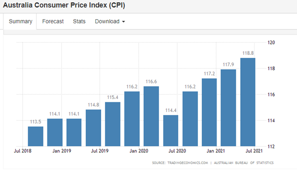 The Australian CPI has been rising gradually as seen in the chart below as the currency continues to lose ground against other majors. With a contraction in the September quarter almost a certainty, the technical recession will only be official with a December quarter contraction. Many economists expect a rebound in the December quarter, but that might be a little optimistic at this rate.