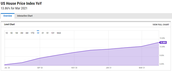 Why not just factor in the actual average cost of buying a house month to month? Well, that would mean the official inflation number would be much higher, and the Central Bank would have to wind back the accommodative monetary policy that is propping up the over indebted economy. The US house price index has risen 13.8% in that last 12 months, but no, this is not a relevant number for calculating how much prices are rising across the economy….